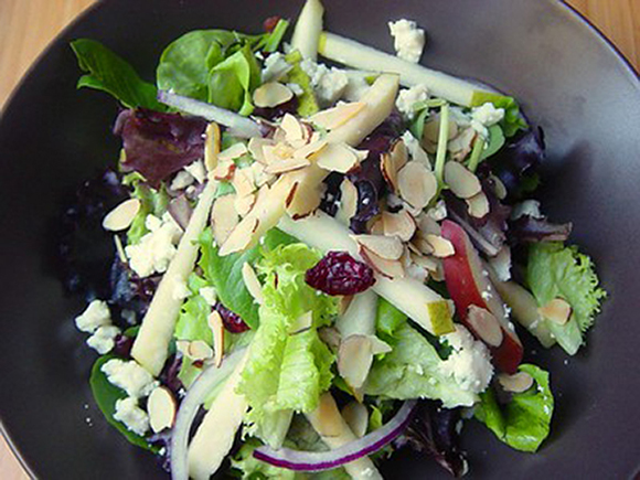 Crispy Fuji apples, pears & toasted almonds are the base for this fall salad. Use any local crisp fresh apples and pears in this recipe!
