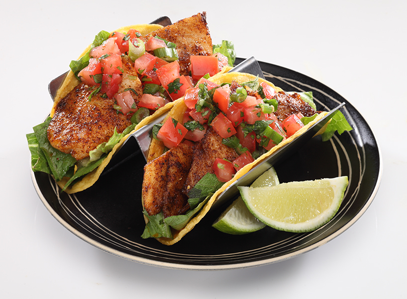 - Wrap tortillas in foil and warm for about 3 minutes in oven. In each tortilla, add 3 tablespoons of salsa, 2 oz of fish and 1 tablespoon of lettuce. Enjoy!