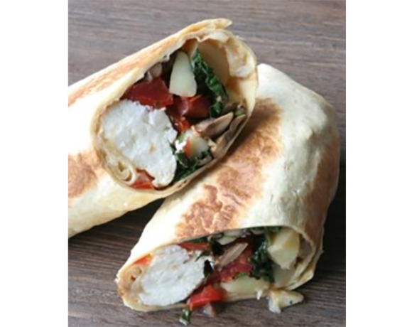 - Heat remaining oil over medium high heat and scramble egg whites (1/2 cup per burrito). Heat tortillas for about 10 seconds on each side. Place on a cutting board. On each tortilla, place cooked vegetables and scramble egg whites. Sprinkle with cheese and basil. Roll tortilla bottom up and over. Fold in sides and roll closed. Heat burritos on grill seam-side down for about 1-2 minutes. Flip over and grill for another 1-2 minutes to heat through. Place on cutting board and slice on an angle.