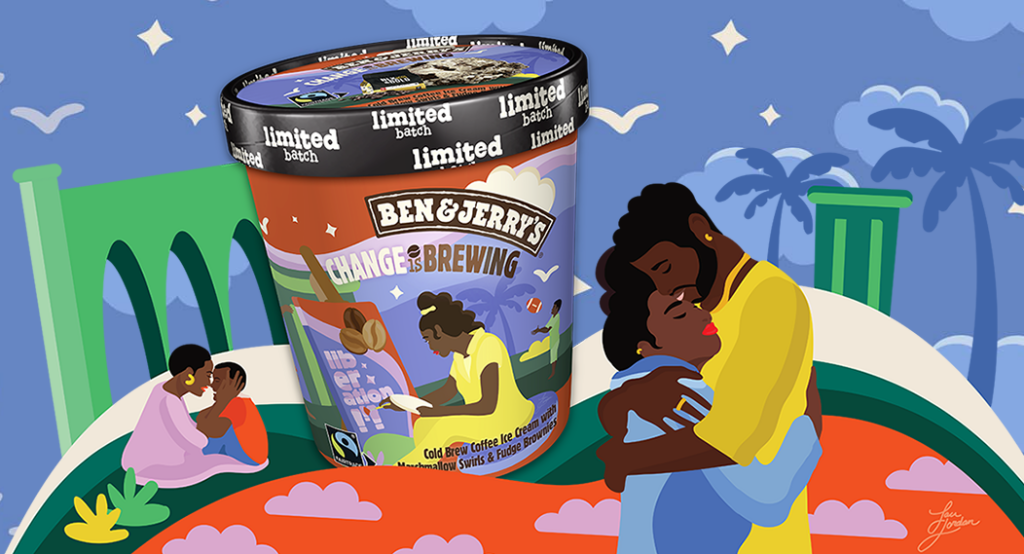 “Change is Brewing” is a new Limited Batch flavor from Ben & Jerry’s. It features unforgettable artwork from Laci Jordan, delicious brownies from Greyston Bakery, and coffee from one or our favorite partners, BLK & Bold. Proceeds from “Change is Brewing” are invested in a vision of public safety that allows everyone to breathe FREE! Obviously, ice cream doesn’t ship well and is pretty hard to wrap but this is a great treat for you and yours after a long day of shopping or wrapping / unwrapping gifts!