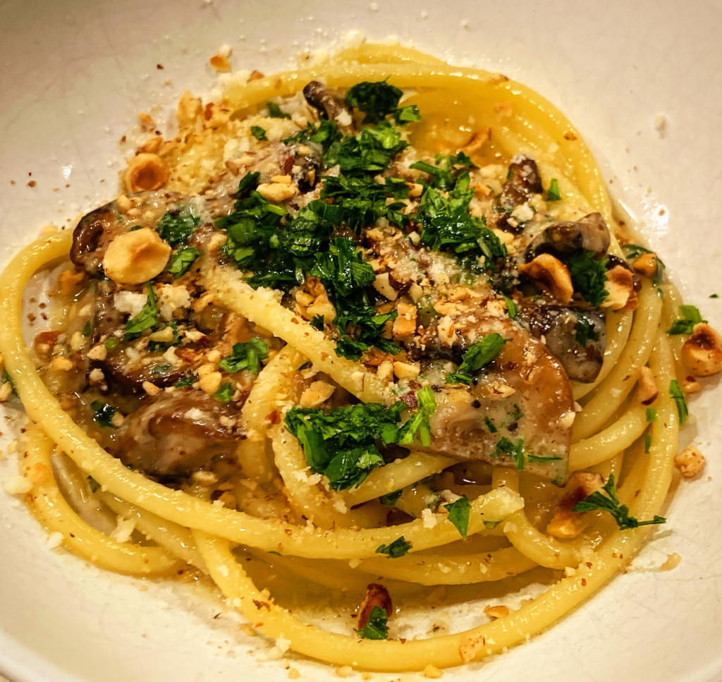 The dish I’m sharing is a wild mushroom carbonara. Its smoky flavor pairs with the crispy texture of the mushrooms and gives you flavor and textural elements that resemble bacon or pancetta. Traditionally this dish is created with regular semolina flour, however a suitable alternative is to use whole wheat or even whole grain pasta such as a quinoa-based one. I love this dish because it gives me everything that I’m looking for in a sexy, satisfying Italian pasta dish without having to add meat or the traditional dairy products.
