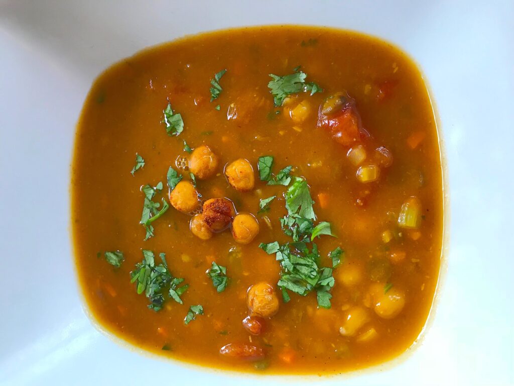 • Divide evenly into 4 bowls and garnish with chopped cilantro and the baked garbanzo beans