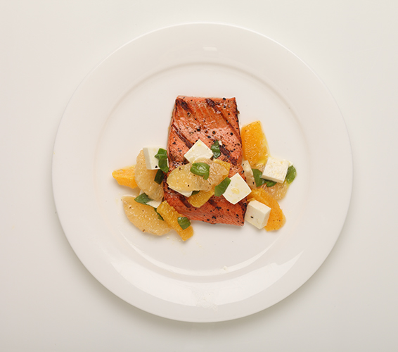 - Top cooked salmon with citrus caprese.