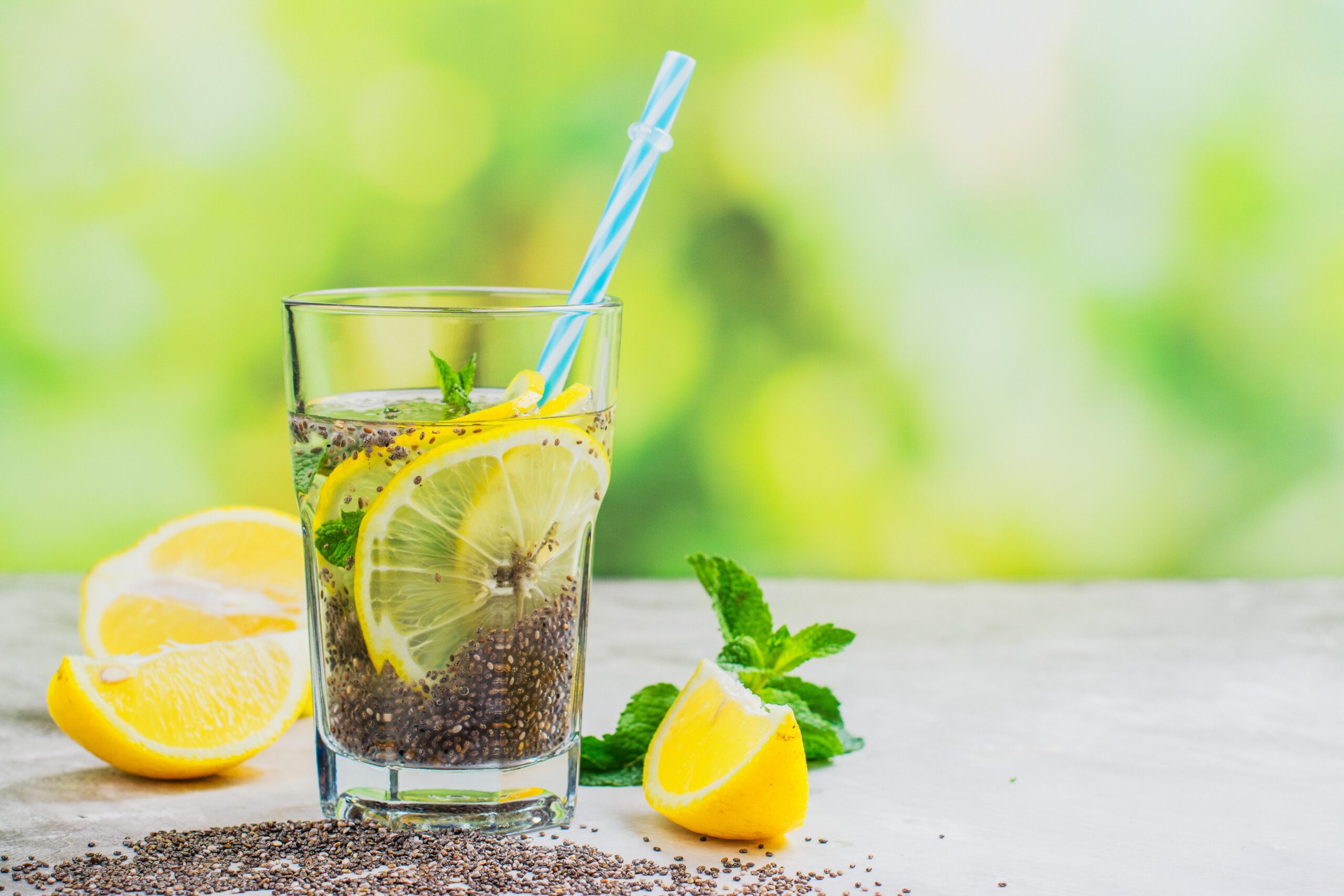 Black tea flavored with lemon and lightly sweetened with chia seeds