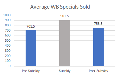 - ~200 more Specials sold during the subsidized period compared to the non-subsidized period