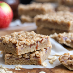In a large bowl, work together oats, flour, brown sugar, salt and baking soda until no lumps of brown sugar remain. Drizzle oil and apple juice over the oats and mix until evenly moistened and crumbly. Set aside 1/2 cup for the topping; press the remainder evenly into the prepared baking pan. Spread apple butter over the top. Sprinkle with reserved oat topping.