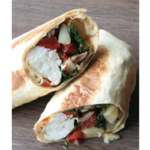 Egg whites, vegetables and smoked cheese wrapped in a flour tortilla
