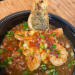 In a large pan, melt butter on medium heat. Add onions, peppers and garlic until soft - about 4 minutes. Add tomatoes, juice, thyme and continue to simmer. Add shrimp and cook for 2 minutes while stirring. Add 1/2 cup stock and wine and cook for 3 minutes. Add tomato paste and blend. Add salt, pepper and tabasco. Take off heat and stir in cream.
