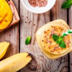 Measure liquid into blender, add in remaining ingredients. Blend until smooth and enjoy.
