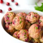Rough chop cranberries and set in a bowl. Add the remaining ingredients and mix well. Roll into 2 oz balls, about 1-1/2” diameter, place on a roasting pan.